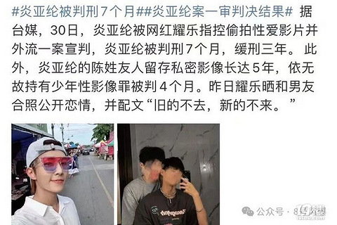 5月30日,据台媒报道,炎亚纶案一审宣判,炎亚纶被判7个月有期徒刑,缓刑3年。 无独有偶,在5月24日,网传大热台剧《不够善良的我们》主演贺军翔也疑似因性骚扰而遭台北警方调查,不仅搜索了住处,还扣查了手机等相关证据。这些都让网友表示:童年男神滤镜碎一地啊... 在娱乐圈,光鲜的外表背后,究竟还有多少无法想象的黑暗?01一代顶流男神被判刑?根据台媒报道,5月30日,艺人炎亚纶因制造、意图散播、持有少
