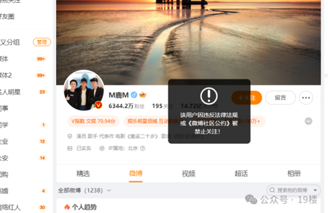 刚刚,鹿晗工作室发布道歉微博,内容如下: 1月6日,话题“鹿晗社交平台被禁止关注”冲上热搜第一,引发网友关注。 截至发稿前,鹿晗个人微博、小红书、抖音均已无法关注,部分平台显示理由为“该用户违反法律法规”。而鹿晗工作室微博账号,在20小时前发博征集十年特别礼。 此事曝光后在网上引起热议,据悉鹿晗近期正在录制综艺《五哈》,节目嘉宾有邓超、陈赫、王勉等人。 鹿晗工作室的账号目前显示正常,最新发布的一