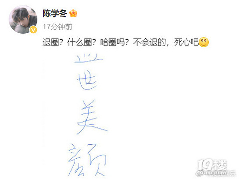 4月7日,有娱乐号称陈学冬近期作品和动态较少,质疑其已经退圈,相关话题也冲上热搜。随后,陈学冬发文回应退圈传言:退圈?什么圈?哈圈吗?不会退的,死心吧。” 来源:搜狐娱乐