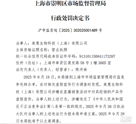 因宣称可改善妇科炎症等不实内容,日前,益生菌品牌菌小宝电商渠道经销商美惠生物科技(上海)有限公司被上海市崇明区市场监督管理局罚款3万元。 就此,2月2日,致电及发送采访邮件至菌小宝官方和母公司晨冠集团,截至发稿前未得到回应,涉事企业电话未能拨通。菌小宝客服回应称,益生菌不是药品,只能辅助使用。 上海市市场监管局公布的行政处罚决定书显示,美惠生物科技(上海)有限公司为上海菌小宝健康科技有限公司的“菌