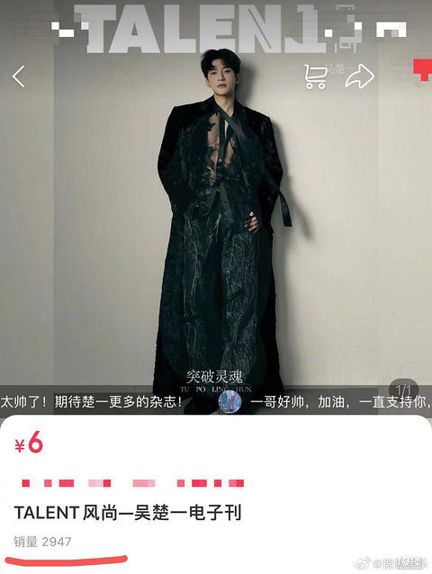 继发布新歌后,吴楚一又拍了杂志封面,根据店铺销售情况来看,吴楚一新杂志卖了近3000本。 来源:搜狐娱乐