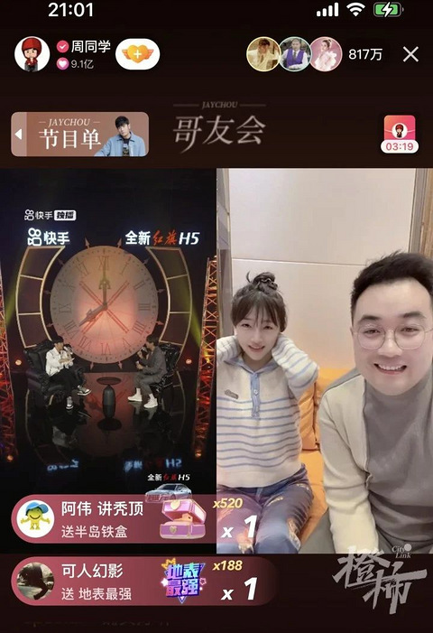 周杰伦快手独家线上哥友会今晚8点准时上线,开播前,预约人数就超过了2800万。 穿着白色细条纹外套出现的周杰伦看起来瘦了不少,一时间,直播间几乎被“好帅”刷屏。说到“哥友会”,周杰伦还特意指了指自己——“哥”。 其实今年夏天,周杰伦就在快手平台上举办过一次“可以说的秘密”线上直播。根据官方提供数据,那次直播累计观看人数达到了1.1亿,最高实时在线观看人数超654万,直播间互动总量更是高达4.5亿,