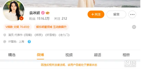 袁冰妍偷逃税后,社交账号被禁言!