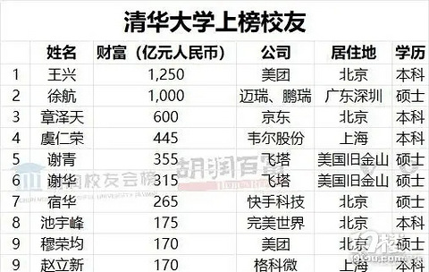 1月7日,胡润研究院发布《胡润校友会榜》,在校友会榜中,清华大学稳居第一。而在清华大学上榜校友的名单中,章泽天赫然在列,以净资产600亿的身家在清华优秀校友中排行第三。 来源:搜狐娱乐