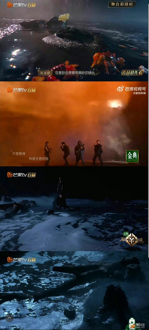 一公舞台太惊艳了吧,每一个都是mv的感觉第一组新地球一出来就震惊了,海浪拍打着礁石,那种世界末日即视感牛了牛了,见过搬水上舞台的,没见过直接造海景的,表演上感觉把c位给潘玮柏更合适,吴克羣声音还是弱了点第二组红云袍,杜德伟衣服一脱,我的天,韩诺回来了!!第八号当铺又出现了!!!尘封的回忆又开始攻击我韩诺没死诶,他都60了还在舞台上给大家跳舞呢但是有一说一这组唱跳舞美显得有些乱糟糟,不是很好看第三组