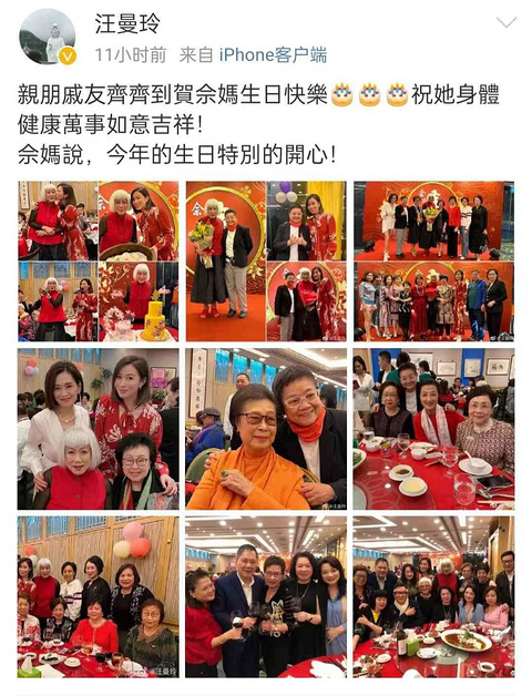 11月20日凌晨,资深的媒体人汪曼玲在社交平台晒出了大量照片,都是有关于佘诗曼为自己母亲庆生宴席上的照片,引发不少人关注。 当天佘诗曼的母亲穿着黑色内衬和一件红马甲,搭配一条黑色长裙,看起来很端庄优雅,花白的头发配上齐刘海,佘诗曼的母亲有着别的老人少有的潮流与个性。而佘诗曼则穿了一条大红色的长裙,身材纤细非常漂亮。母女俩在一起合照非常温馨,佘诗曼还当着镜头亲吻妈妈的脸颊,两人脸上都挂着笑容,看起来