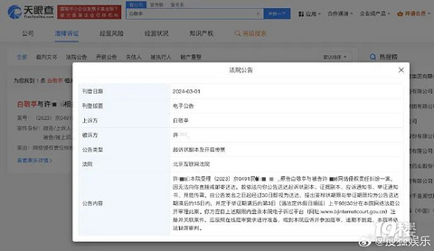 据天眼查,近日,北京互联网法院向许某某公告送达白敬亭与其网络侵权责任纠纷起诉状副本、应诉通知书、开庭传票等材料。自公告发出之日起经过30日即视为送达,并定于举证期满后的第3日公开审理此案。 来源:搜狐娱乐