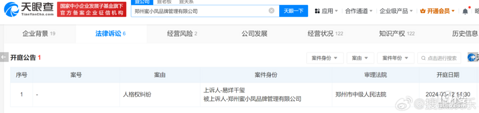 天眼查法律诉讼信息显示,易烊千玺与郑州蜜小凤品牌管理有限公司人格权纠纷上诉案新增开庭公告,上诉人为易烊千玺,案件将于3月12日在郑州市中级人民法院公开审理。据悉,蜜小凤为冰糖葫芦品牌,多位网友曾发帖称该品牌使用易烊千玺肖像做宣传。 来源:搜狐娱乐