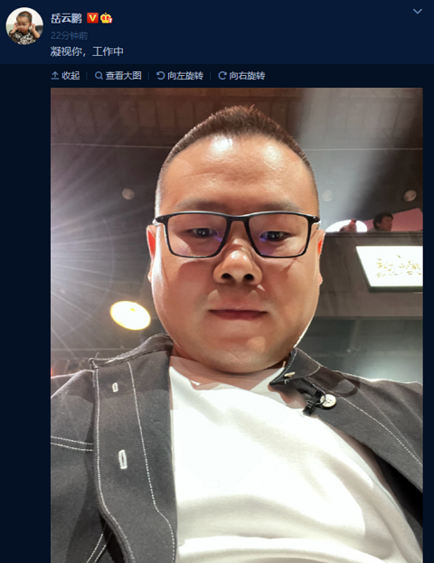 岳云鹏晒照回应网络传言:凝视你,工作中