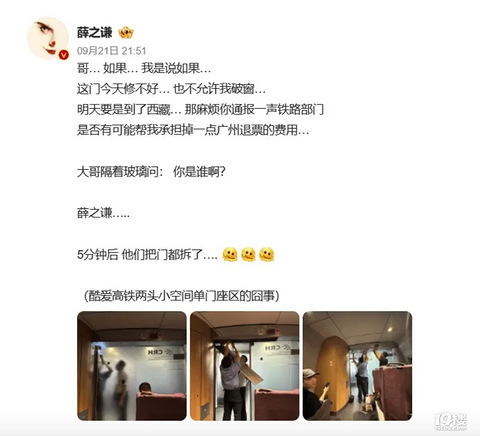 薛之谦再遇高铁囧事,被困单门坐区列车员硬核破门