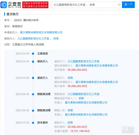 郑爽偷漏税涉事公司拟注销,仍存在千万欠款未履行