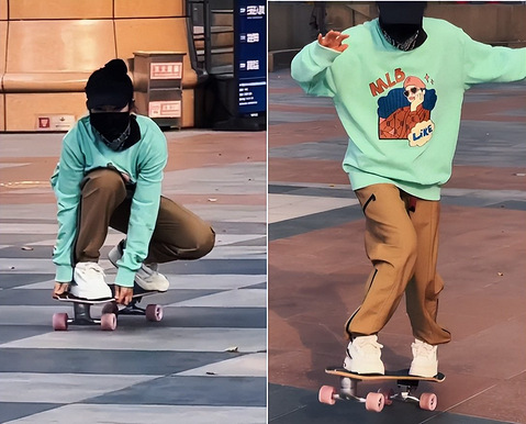 近日,李冰冰在某社交平台分享一则自己玩滑板的视频,这一玩滑板的新奇举动让不少网友吃惊,顿时引起了热议。 只见视频中的李冰冰与以往端庄大方的美丽形象不同,而是穿着绿色印花卫衣搭配宽松卡其色休闲裤,戴着黑色帽子和同色口罩,整个人显得十分休闲轻松又街派十足。 前不久李冰冰也晒出过自己玩滑板的视频,相比上次肉眼可见的谨慎与小心翼翼,这次的她在滑板上要从容很多,不仅滑得顺畅丝滑还小小秀了一把自己稳稳蹲着滑的