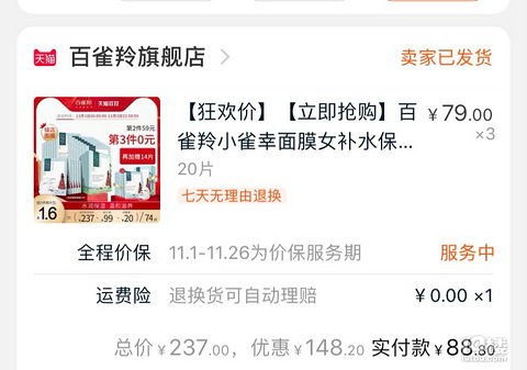 百雀羚小雀幸补水面膜每次遇到活动都会囤的补水面膜,使用后感觉挺补水的。雅诗兰黛小棕瓶眼霜这款眼霜滋润度很高,对于熬夜的MM就是福音。INNISFREE气垫隔离霜在外面不方便时可以轻松补,很清爽不会粘腻,好用。 免冲洗洗发帽黑科技的洗发帽,免水冲洗使用微波炉或热水加热后,像浴帽那样套在头上按摩3分钟,头发就清洁完成了。婴儿小方巾之前给闺蜜的宝宝买过,质量非常好,还是双面设计,这次活动6条还不到17元