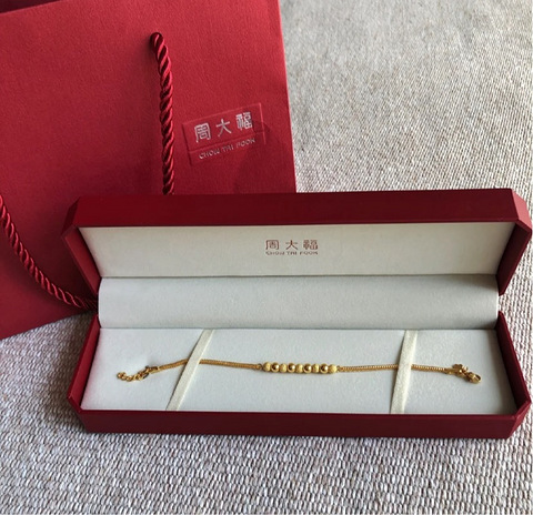 周大福光沙金珠黄金手链,妈妈送的生日礼物
