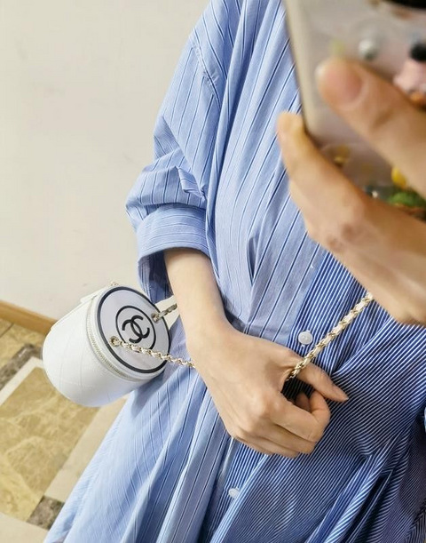 刚从专柜抱出,实在是太可爱了吧!黑色双C搭配白色包身!夏天真的是绝绝子啊!链条长短也正好,还可以收到里面变短做手拎一直以来买包的标准就是必须要能装下手机,可是这个包真的只能装可爱了,哈哈哈!颜值太高无法拒绝,又那么难买。 图集 只是我好像走帅气风的,没有什么衣服配