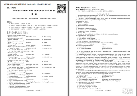 19楼教育版块为您提供2025年浙江省初中名校发展共同体期中测试八年级英语试卷,获取试卷完整电子版pdf免费下载及参考答案分析请下拉至文末。 学校:浙江省初中名校发展共同体学年:2025 年级:八年级学科:英语性质:期中文件大小:5.02MB PDF密码请添加下图助手号领取