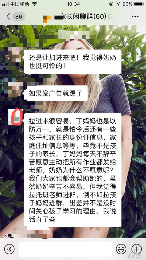 人多我稍微编辑下 ,群主没有任何毛病,而且群主能做到的 我也做不到, 我只是发个戏精出来给大家欣赏欣赏 大致交代下,小学微信群,老师天天在群里发布作业,不过太多人在群里发布些无关紧要的信息,导致有的时候爬楼很麻烦,有些家长也会漏看信息,然后一位妈妈(非家委会成员)主动拉了一作业个群,定了规矩,除了老师发布作业以外,其他人一概不要在此群发言。 昨天一位奶奶邀请了一位他孙子的托班老师进作业群由老师负