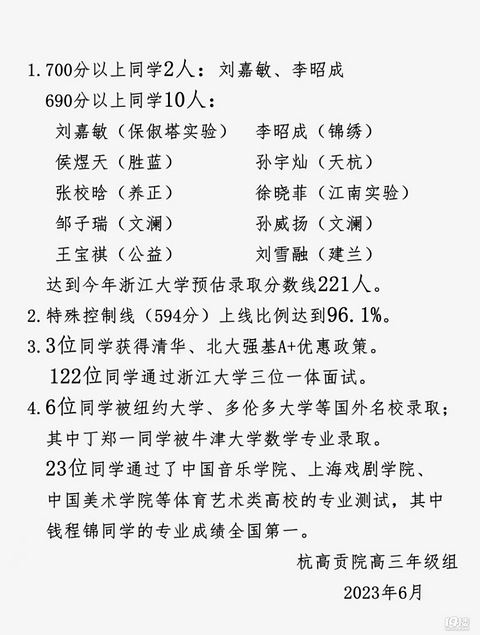 杭高被点名了一天,终于姗姗来迟[ej=1F602],不是挺好的嘛?两校区都很不错。不明白为什么不第一时间发?是因为最高分没有特别高?