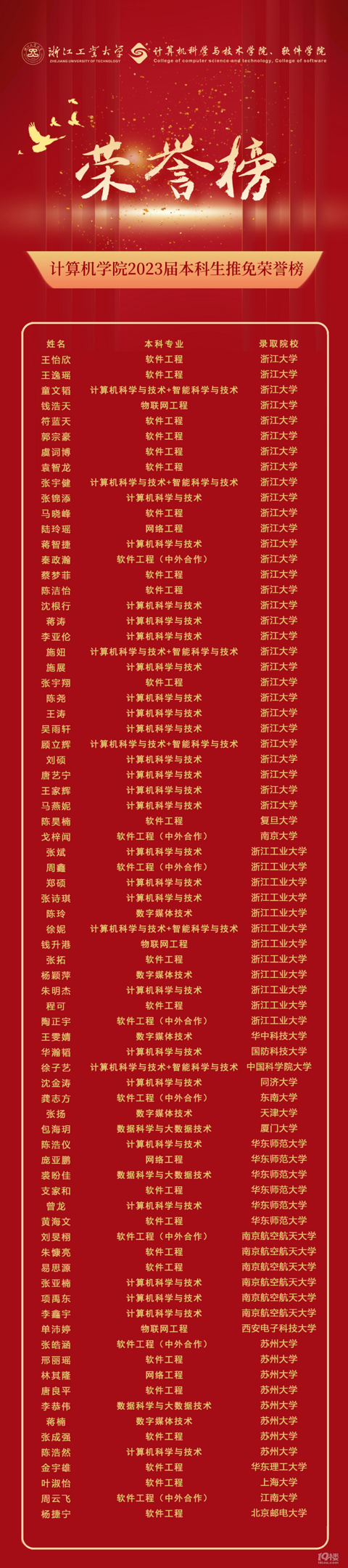 浙江工业大学喜欢发保研红榜,有点大学保研高中高考化的感觉。从光荣榜来看,浙工大计算机貌似是浙江大学计算机的本科预备学校。1、浙江大学的计算机在全国是顶尖的水平,所以可以说是学生的梦想学校和专业。2、在全国,不要说双非高校,就是顶尖的211或者普通985要想保研浙大计算机硕士也非常困难。3、不过从第五轮的计算机学科预计评估来看,浙江工业大学的计算机由B变成B+,排在42位,看样子浙江工业大学计算机学