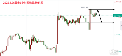 2025年8月26日黄金分析:震荡中的多空博弈与前景展望在全球经济与地缘形势错综复杂的大环境下,黄金市场的动态一直备受投资者瞩目。2025年8月26日,黄金市场延续了近期的震荡调整行情,昨日收盘为小阳线,多空双方的力量仍在激烈较量,市场走向充满变数。技术面分析从小时图上看,均线系统呈现多头排列,但短期均线有缠绕迹象,显示短期走势有一定的不确定性 。价格在3370 - 3380区间震荡,上方阻力位在