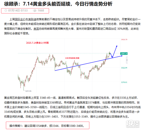 徐顾承:7.14黄金能否突破阻力,晚间行情走势分析
