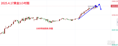 美中贸易摩擦再度升级,美国对中国商品大幅加征关税,中国随即采取反制措施,双方贸易关系陷入紧张。与此同时,美国还对全球贸易伙伴实施普遍性关税政策,电子和医药等关键行业面临精准打击,全球供应链稳定性遭受冲击,市场避险情绪急剧升温。黄金作为传统避险资产,其价格走势备受关注。 昨日黄金价格虽在3210至3233区间内窄幅震荡,但今日早盘便强势突破震荡区间,欧盘时段更是刷新历史高位至3324一线。从技术面来