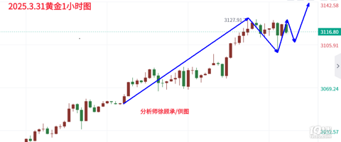 4 月 1 日黄金行情走势分析截至 2025 年 4 月 1 日,黄金市场延续了此前的活跃态势,呈现出多空博弈下的高位震荡格局。一、周线级别分析从周线图来看,长期看涨趋势依旧稳固。目前 5 周均线系统维持多头排列。不过,需留意的是,近期 K 线上影线较长,这暗示着短线存在一定回调压力,可能会对短期均线指标进行修正。但只要回调过程中不破坏整体多头结构,在完成修正后,黄金大概率将重拾涨势,延续长期的上