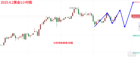 4月2日黄金行情走势的分析:- 从周线图看:长期看涨趋势稳固,5周均线系统维持多头排列。不过,K线上影线较长,暗示短线有回调压力,可能修正短期均线指标,但只要多头结构不被破坏,完成修正后黄金仍有望重拾涨势。- 从日线图看:多头持续发力,此前连续收阳,看多形态明显,多头力量逐渐增强。上方阻力区间位于3200美元,短期内金价可能依托此阻力位回调修正,只要守住布林带中轨一线支撑,中期看涨趋势仍然不变。-