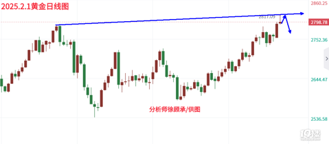黄金市场昨夜攀至2845美元的高峰后,尾盘阶段在高点附近展开了4-5美元的窄幅震荡,显示出上方压力区域的存在。随着大年初八的到来,各行各业陆续复工,市场活力逐步恢复,黄金TD也即将迎来开盘,预计交易活动将更加频繁与活跃。 今日早间,黄金开盘平稳,维持了一段时间的低位震荡后,再次刷新历史高点,触及2848美元。然而上方强阻力区间2848-2853美元如同一道难以逾越的屏障,限制了金价的进一步上行。在