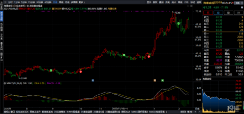 海康威视,2月1日出来的卖出信号,后面逢高就是卖出机会,今日大跌7.11%,日线卖出早有信号,我们再来看今日盘中应该如何是卖出,有什么信号乾坤线分时操盘系统日线出卖出信号后下跌几天,之后企稳,上图的分时中,我们通过技术指标提示买点,然后连续反弹3日 连续三日的反弹,大概从买点开始,可以有9%左右的利润,然而今日冲高后跌破分时趋势,出了卖点 如上图,今日跌破分时趋势,联合前期日线出的卖点,今日盘中的