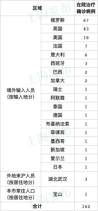 上海市卫健委今早(12日)通报:4月11日024时,通过口岸联防联控机制,报告52例境外输入性新冠肺炎确诊病例。新增治愈出院3例,其中来自英国2例,来自美国1例。 病例1-病例51,均为中国籍,乘坐同一航班,4月10日自俄罗斯出发,当日抵达上海浦东国际机场,因有症状,入关后即被送至指定医疗机构留观。综合流行病学史、临床症状、实验室检测和影像学检查结果等,诊断为确诊病例。 病例52为中国籍,在加拿大