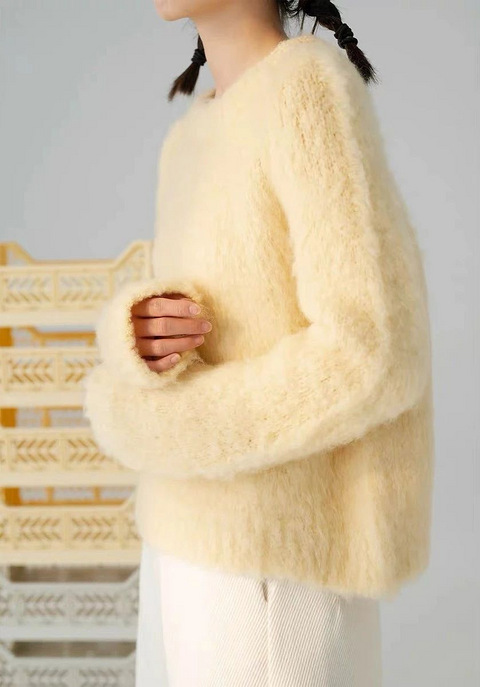 毛衣推荐帖这不就来了么! 从去年开始,毛衣确实够难买的,时髦款全是露肚子的,是要逼死谁? 今天就给你们扒一扒今年有什么值得买的新毛衣。 长绒毛款毛衣 这种毛衣以前很被唾弃的,看起来廉价不显好,大都是宽松没型的老妈子款,一上身就是怀胎十月的效果。 不过现在很多牌子把这种材质玩出了新花样,硬是吹起一阵大流行。 比如山寨厂家的灵魂缪斯For lovelemons,他家出的这件小粉毛衣,真是怪可爱的。 单