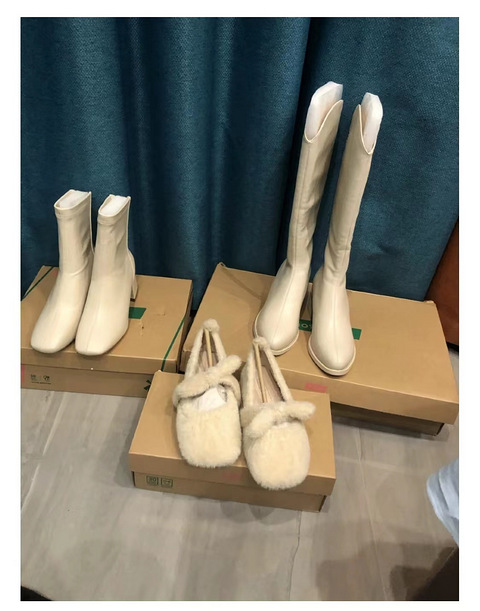 一次性买了3双热风的白色鞋子,从毛毛鞋到中筒靴到高筒靴