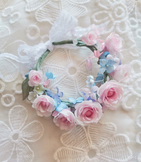 原创设计手作真丝烫花玫瑰花环小布娃饰品