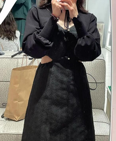 去only试了一件两件套裙子 腰两侧是露肉的,外套脱掉里面是吊带裙吊牌价899打完折七百多