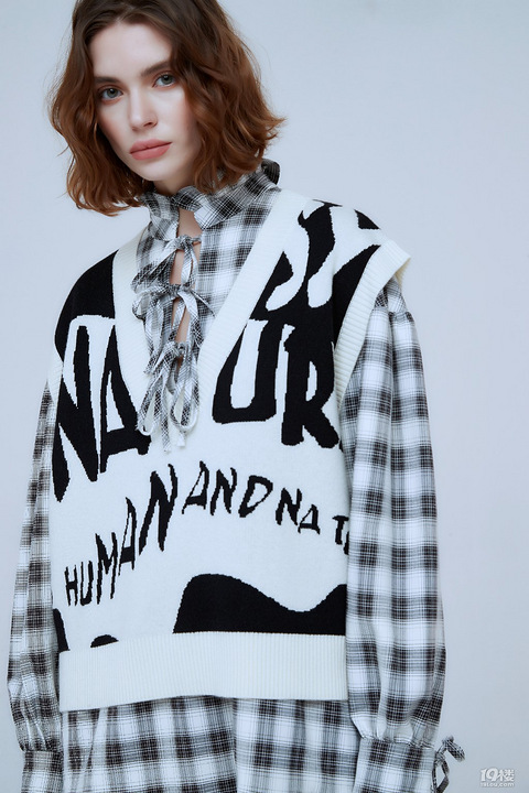 如果你还觉得针织马甲是爸爸辈的,那你就out了!这款撞色马甲非但没有老气横秋的古板感,还自带青春的校园气息,简直是减龄神器。 马甲上面街头感十足的黑白涂鸦式字母印花个性张扬,撞色交织精致又有高级感。深V领口使马甲少了拘谨感,能更好展现叠穿效果。宽松版型轻松包容各种身材,显瘦遮肉对微胖妹纸很友好。马甲内搭黑白格纹连衣裙,色彩相互呼应又有学院气息。 这款马甲不仅减龄显青春,而且四季皆可入哦,夏天可单穿