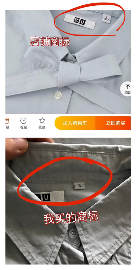 前两天在优衣库买了一件衬衣,因为之前去店里试了的,所以收到快递第一时间发现不对劲,首先面料摸起来都不对,我再一看商标和水洗标也不对,我就联系天猫客服,但他们一直不解决,并且坚持称这就是他们家的衣服,然后我带着衣服去实体店问了店员,首先走线就与店里衣服差别大,店员说同一件衣服不可能出现不一样的商标,并且他们所有衣服水洗标都是有优衣库标识的,各位集美评评这是收到假货了吧!