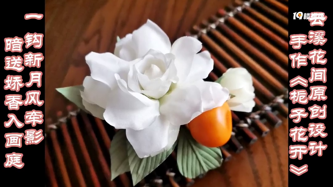 一钩新月风牵影,暗送娇香入画庭,柑橘栀子花,原创手作真丝烫花