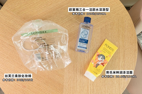 丝芙兰柔肤化妆棉:材质柔软,够厚实,释水性也不错 常年回购欧莱雅三合一洁颜水(深澈型):卸妆力很好,全脸都可卸,质地超清爽,不糊眼睛 会回购旁氏米粹润泽洁面:最便宜好用的氨基酸洗面奶 常年回购