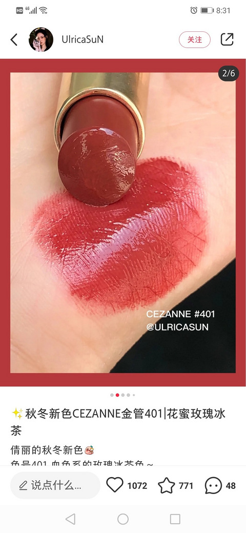 倩丽真的便宜好用,颜色好看,又很润,新出的401很秋冬,代购买了两只,已到货,我个人觉得无色差,适合唇色稍浅的额!