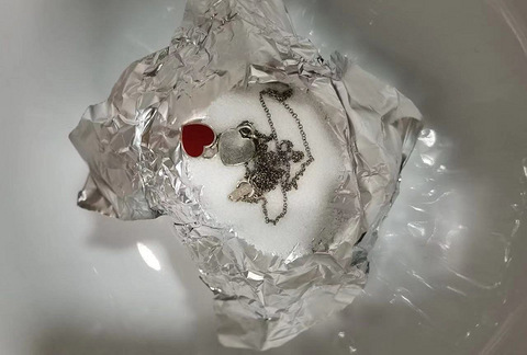 有效的方法如下:准备锡纸、食用盐、100度沸水。将锡纸折成盒装,放入一勺食用盐,将黑坨坨的银项链银手链放进去,加入沸水,等待五分钟,就能看到变成白花花的银子了。特别说明,也许是项链变黑的程度比较严重,这个方法反复了四五次,才清洗出来,所以要有耐心,一次不行就再一次....多洗几次就能复原啦!