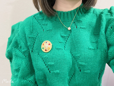 复古时尚风席卷而来,最近入的胸针最喜欢这款,奈何一直不知道它适合搭配什么衣服,没想到今早收到的绿色毛衣竟然和它这么搭! 毛衣是在抖音直播间买的预售款,下单很久了,久到我都快忘了还有这件衣服夏天我喜欢买项链,秋冬我就喜欢买耳环戒指胸针,很满意最近入的胸针,除了上面