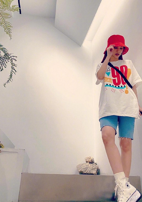 杨丞琳又来秀穿搭了,T恤短裤才是夏日最清爽的单品,时尚又减龄