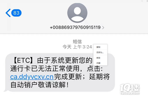 提醒!提醒!提醒!最新ETC骗局曝光已经有人中招了!!!今天刷朋友圈,被一条消息震住了 事后,私信了那位朋友了解具体情况,昨日凌晨,广州曹先生收到一条这样的短信 ETC认证失效 ETC无法正常使用?曹先生想到刚办ETC不久,为了避免影响通行,于是点击链接查看弹出了这样的页面 曹先生按照提示输入银行卡号,身份信息及预留电话等认证信息,输银行密码时候才意识到不对劲,这才没有让骗子手段得逞非常幸运地避免