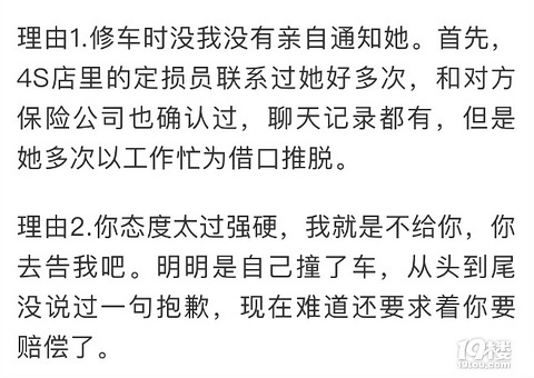 杭州一姑娘最近买了一辆进口奔驰E260,还没上牌,就被撞了。车子定损5000元,因为对方年检过期,车险部分只能赔付2000元交强险,对方找各种理由推脱,不肯支付修车费。 10月8日发生事故后,姑娘开始了漫长的“追债”路。按姑娘的话说,对方就是个奇葩。 肇事方是一名女性司机,在这起事故中被判定为全责。汽车修好后,对方并不认可5000元的维修费用,先称修车时没被通知,不肯付修车费,之后又称姑娘沟通时态