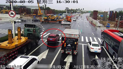 什么?转弯不让直行,直行车全责?两车追尾,前车全责?这3类定责颠覆你想象!8月5日,谭先生驾驶一辆车在珠海大道交江珠高速出入口等红灯,等到绿灯后,他就驾车越过停止线向前开过去,结果就在他直行经过路口的时候,一辆车从江珠高速出入口左转进入珠海大道。两车避让不及,发生了碰撞。大家可以看下面的动图。 从这段视频里,大家可以清楚地看出,谭先生是正常等红灯,然后绿灯起步,直行进入路口,快开到对面时,左边路口