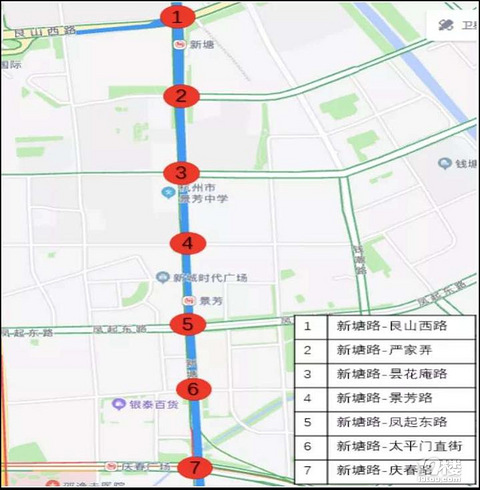 新塘路绿波带是怎么回事?新塘路是杭州江干区域南北向主要干道,北接火车东站,南连过江隧道及钱江世纪城,是江干区域重要的通勤要道之一,高峰期间车流量较大。 为了提升新塘路通行效率,提高出行体验感,杭州交警于十月初在新塘路的艮山西路-庆春路路段建立了绿波协调,全长约2.2公里,共涉及7个红绿灯路口,分别为新塘路-艮山西路(路口1)、新塘路-严家弄(路口2)、新塘路-昙花庵路(路口3)、新塘路-景芳路(路