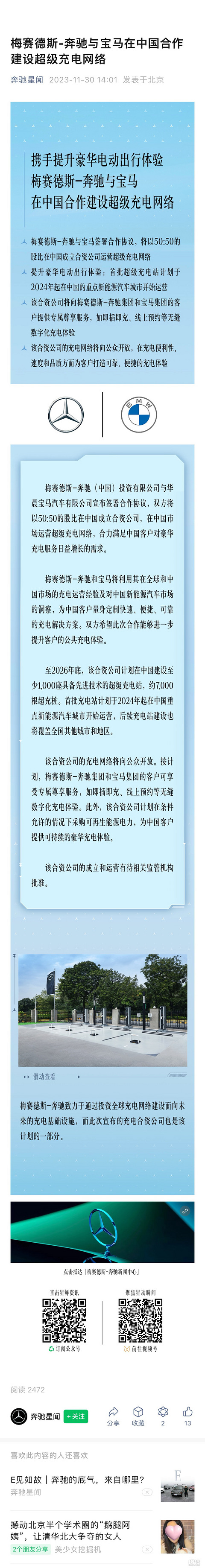 梅赛德斯-奔驰与宝马在中国合作建设超级充电网络