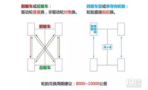 有车身的重量并非平均分摊在四个轮胎上,经常换位有助于保证轮胎的均匀磨耗,从而延长轮胎的使用寿命。 对于前驱车来说,轮胎的对调是将左后胎换到右前轮上,右前轮换到右后轮,右后胎换到左前轮上,左前轮换到左后轮;还有一些四驱车型,建议将四条轮胎都进行前后左右的交叉对换,即左前调至右后、右前调至左后、左后调至右前、右后调至左前。 但是如果车辆安装的是单导向轮胎的话,由于轮胎花纹的原因不能进行交叉对换,只能前