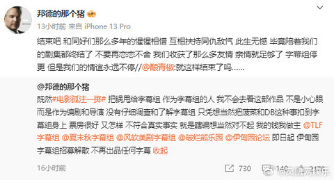 日前,伊甸园字幕组宣布解散停更,称《孤注一掷》把锅甩给字幕组,编剧和导演没有仔细调查和了解字幕组,设定字幕组投放赌博广告的剧情,不符合真实事实。即日起伊甸园字幕组招募解散,不再出品任何字幕。 来源:凤凰网娱乐
